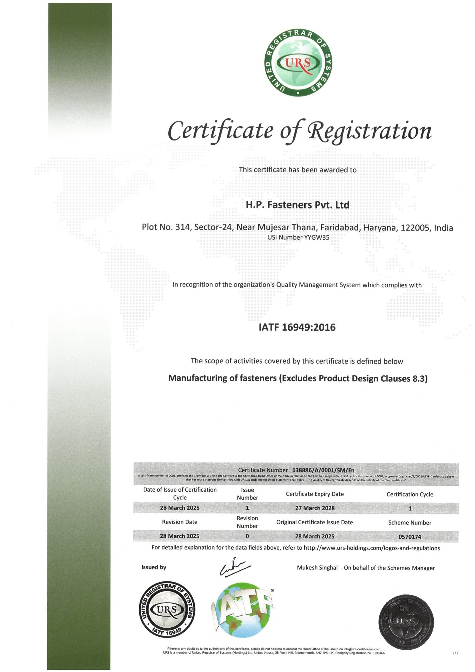 We adhere to the strictest global and industry-specific benchmarks, ensuring every fastener is produced under rigorous process controls and sustainable practices.